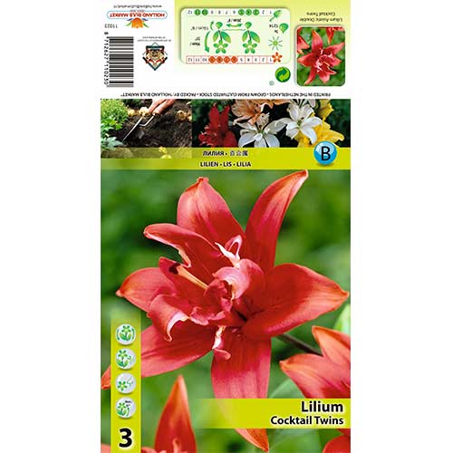 Лилиум Cocktail Twins - красив и елегантен сорт, който ще украси всяка градина. Подходящ е за цветни лехи, моно засаждания и създаване на групови композиции. Цъфти ярко, по оригинален начин, непретенциозен при отглеждане. Расте без пресаждане и разделяне от 3 до 5 години. За засаждане изберете място с рохкава, дишаща почва, където не се натрупва влага.